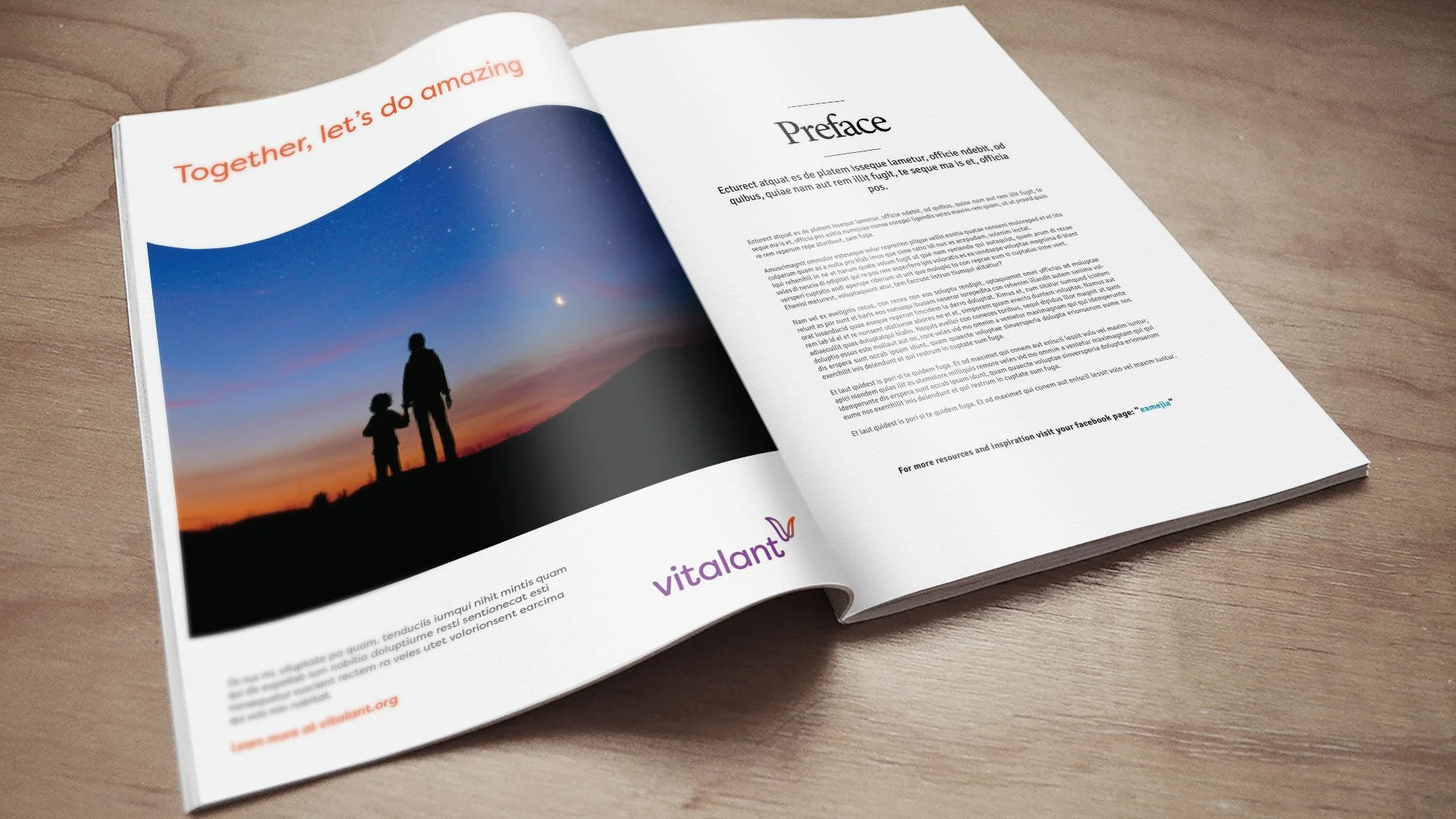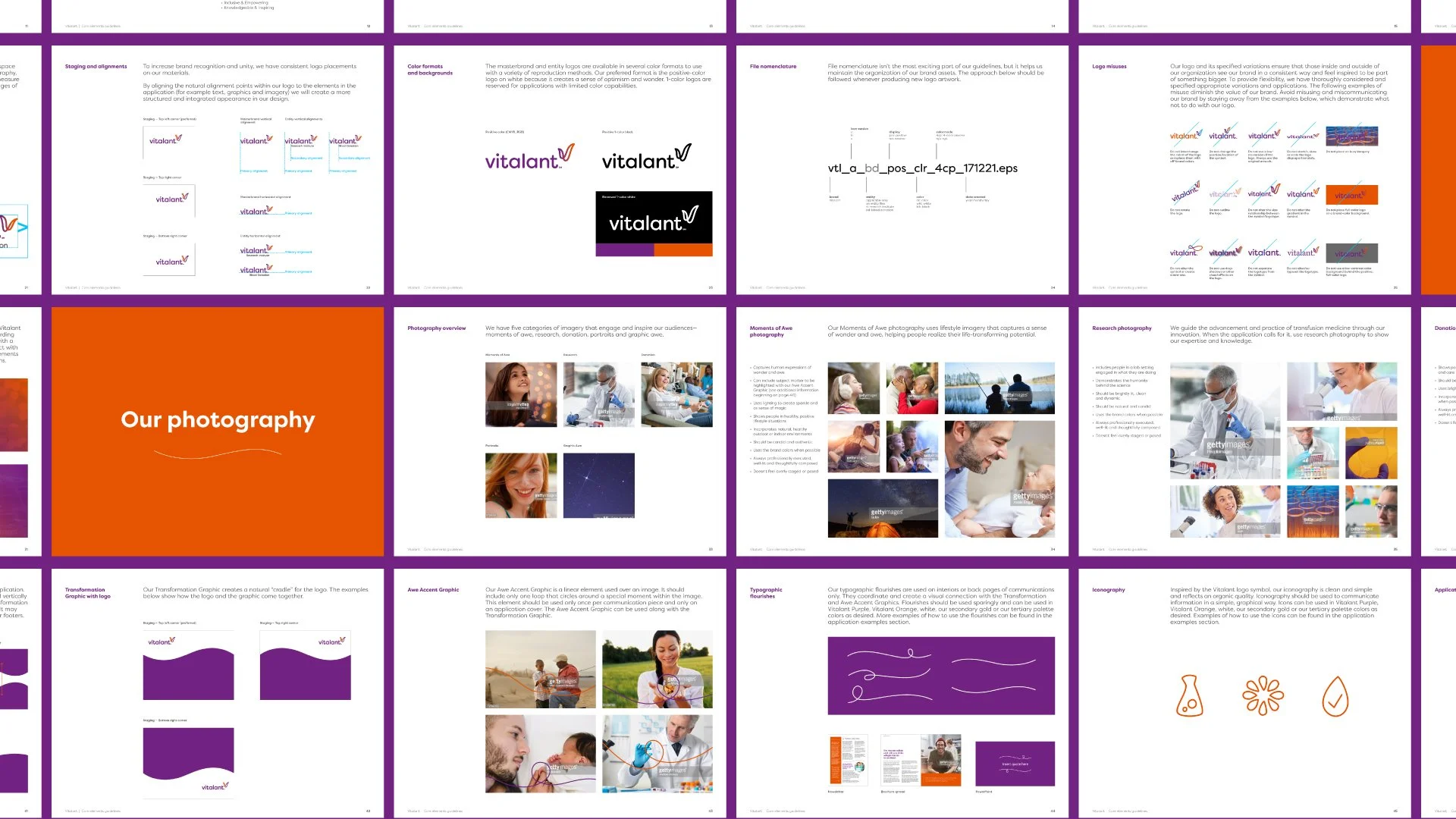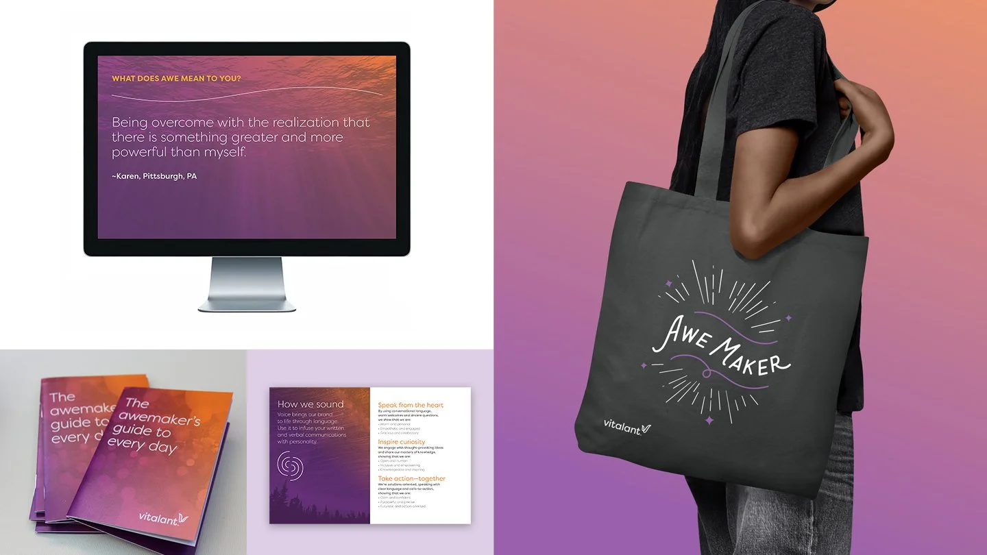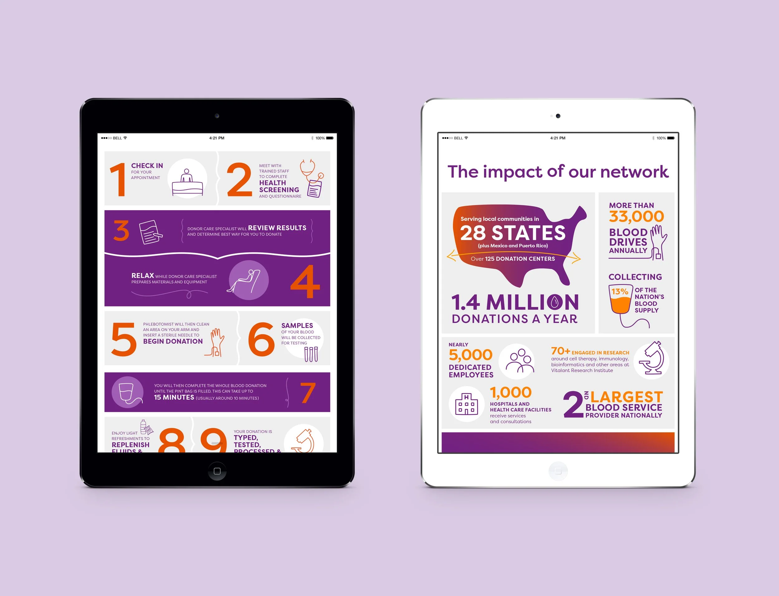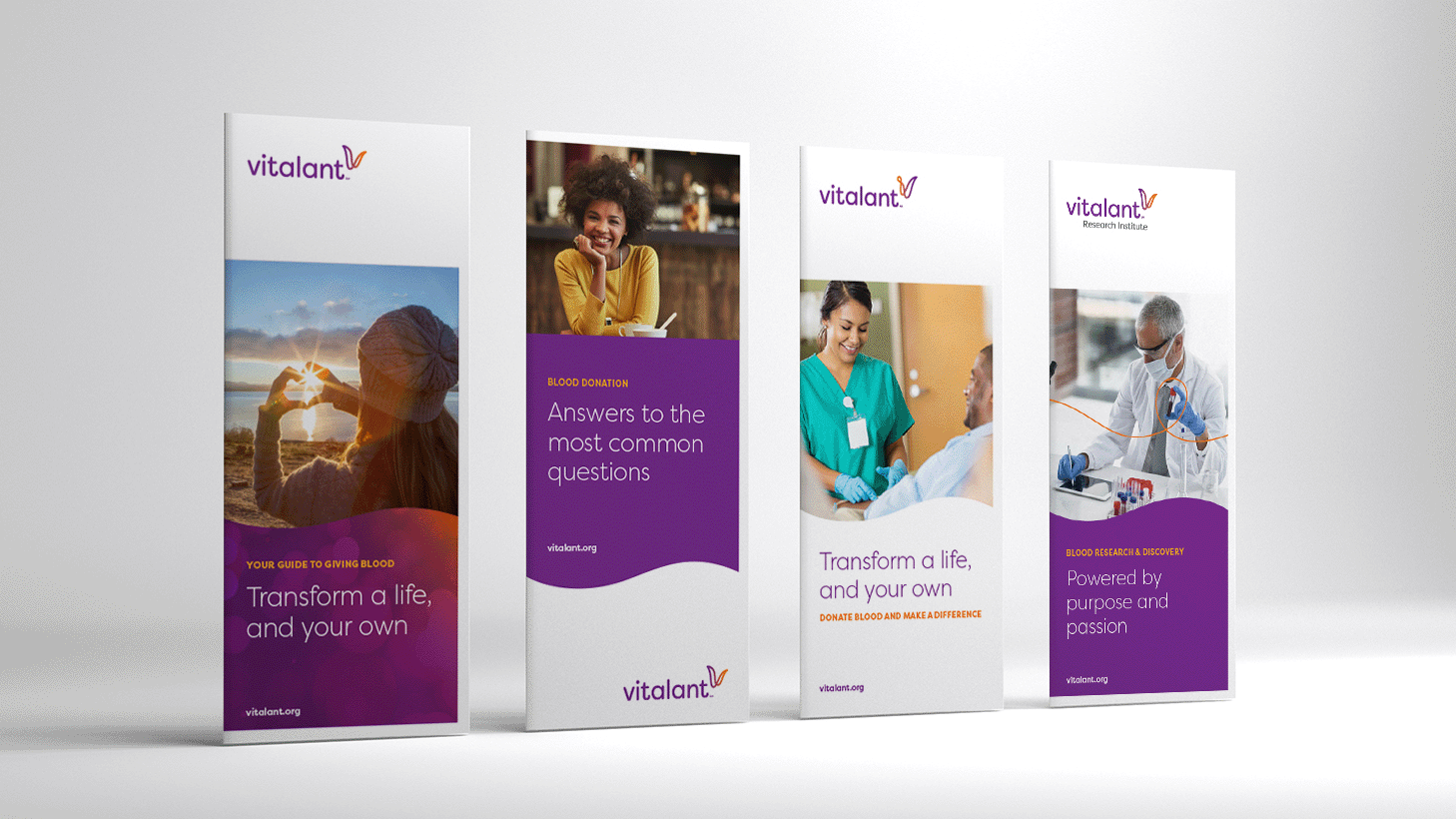 Vitalant is one of the largest blood donation organizations, with 125+ donation centers and leading research institutes. Its visual identity embodies transformation, inspired by the butterfly — a symbol of energy, movement, and the ripple of impact each donation creates. The design system reinforces this motion with curves that convey change, care, and continuity, extending the concept across brand assets. Brand guidelines, a digital asset management tool, and employee training ensure the identity is applied consistently across the organization.